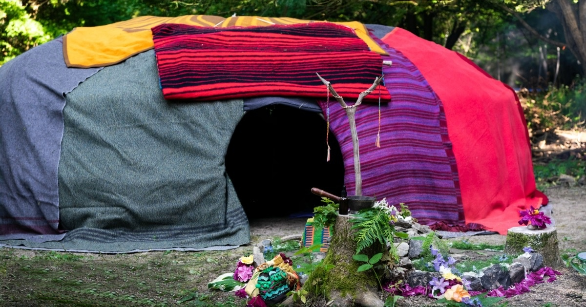 Erhitzte Steine werden in die mit Naturmaterialien bedeckte Hütte gebracht und dort mit Wasser übergossen – ähnlich dem Prinzip einer Sauna. Der aufsteigende Dampf erfüllt den Raum mit Wärme und Intensität.